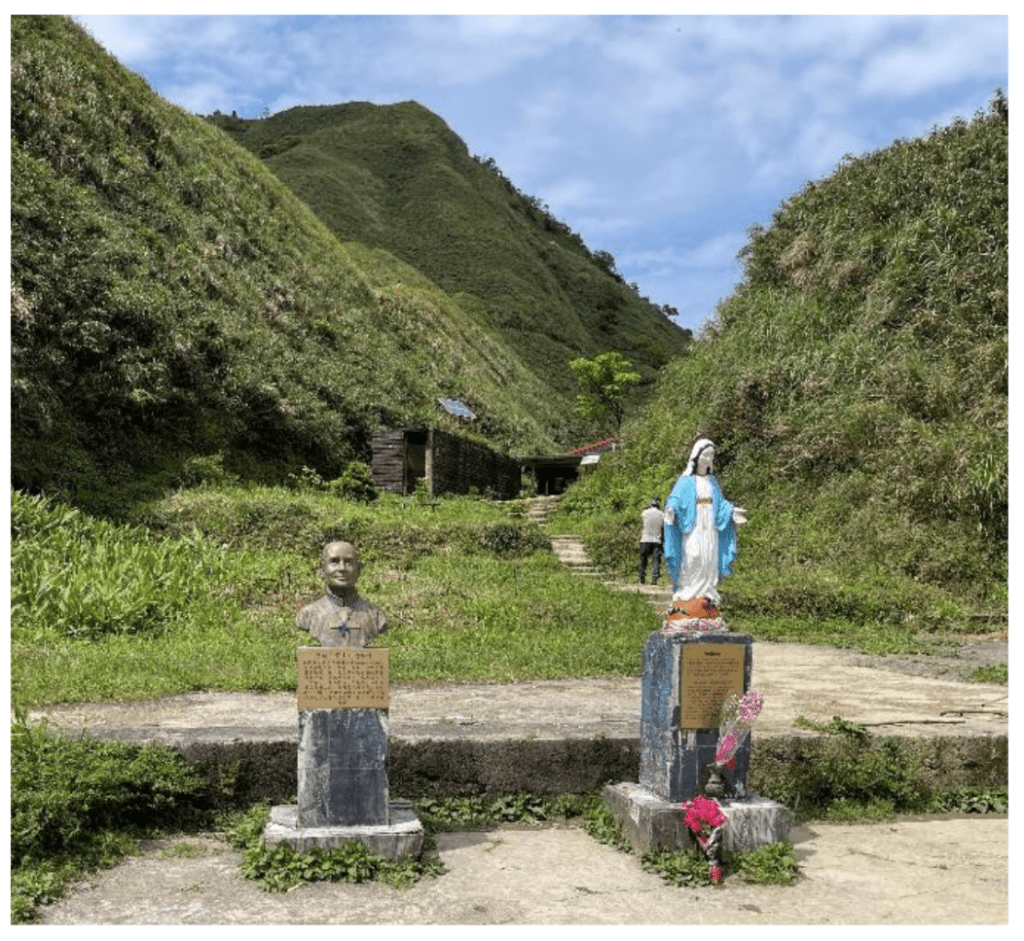 到了聖母朝聖地稍作休息後便開始了今天的重頭戲:登聖母山莊。從聖母朝聖地到通天橋(中點)約2.7公里,這路上都算是平穩的路。從通天橋到聖母山莊約1.6公里才是真正開始爬山。1.6公里內海拔落差是500公尺,一路上大小階梯不斷,我們一行四個人一路上走走停停、有說有笑、唱歌、聊著每個人的生活及信仰,也聽著神父講述有關聖母山莊和聖母朝聖地的典故。為了更有動力驅使我們一直往前走,一路上還不忘想著下山後要去吃冰。不知不覺地我們就已經走了四個小時,終於到達了聖母山莊。從早上十點半左右開始走到達聖母山莊已是下午兩點半左右。聖母山莊旁有一處高的觀景平台,從平台下方往上走大約有50個階梯。從階梯的開始便有一處一處的苦路像沿著階梯到觀景平台。對於14處苦路中的事件我都知道,但是真的要一處一處正確地說出來還真的有點困難。看著一處處的苦路像沿著階梯往上走也默想著每處苦路的意義。觀景台上可以俯瞰整個蘭陽平原和抹茶山。風景讓人看了心曠神怡,感嘆造物主的偉大。感謝天主一路上都是陰天,一直到快到山頂上才出太陽。
